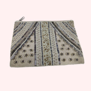 contrast between the pristine white beadwork making it a visually captivating accessory. The delicate floral patterns capture the essence of artistry and high-quality craftsmanship gives this bag a timeless quality. It’s not just an accessory; it’s a celebration of creativity and individuality.