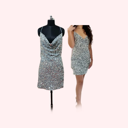 The sparkling Spaghetti String Dress is a dazzling and glamorous gown designed to make you shine like a star on any special occasion. adorned with intricate sequins and shimmering embellishments that catch and reflect the light, creating a mesmerizing and radiant effect. Perfect for formal events, red-carpet appearances, or any occasion where you want to make a statement. Pair it with elegant heels and statement jewelry to create a show-stopping ensemble. It’s not just a dress; it’s a symbol of opulence, confidence, and timeless glamor. It features a unique and eye-catching back design, ensuring that you leave a lasting impression from every angle.